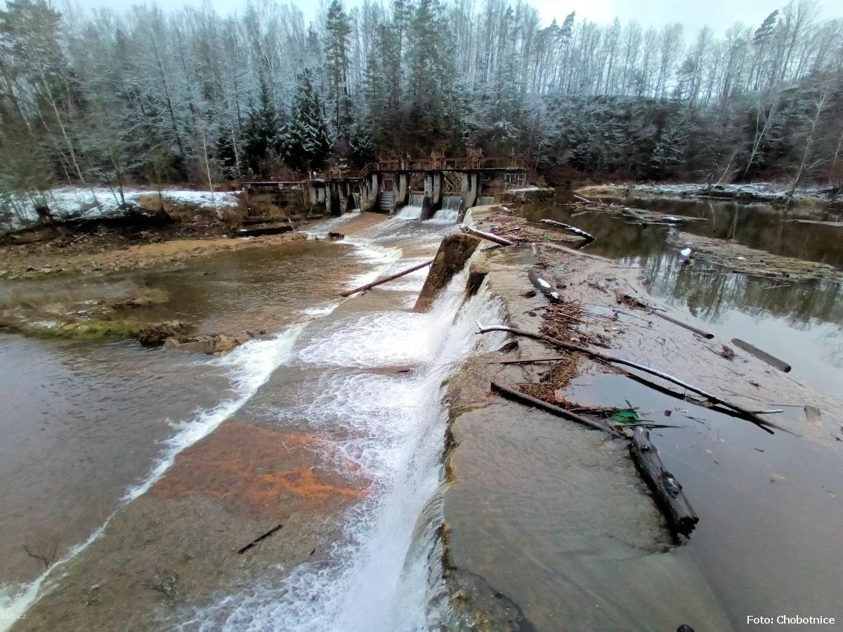 r.km 6,8 Zbytky jezu za průtoku 5 kubíků v Předlánce 21.12.2024