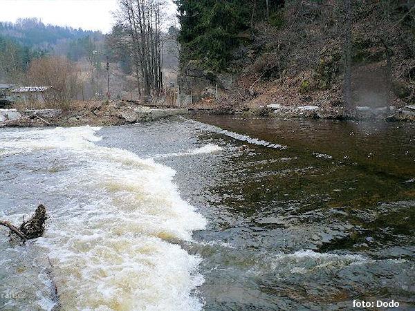 Na km 34,3 je obnoven jez, od kterého je voda odváděna náhonem k Rohnovu mlýnu. Jez je obnoven dost ...