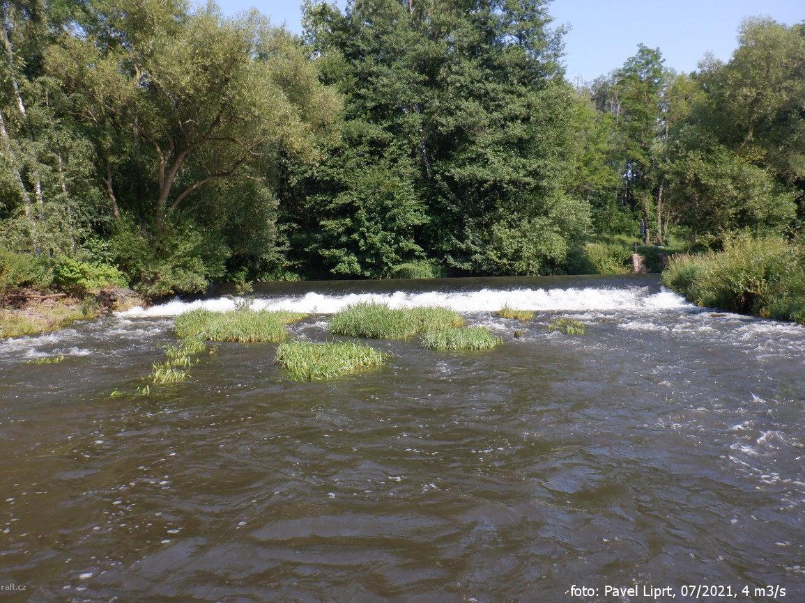 r.km 71,5 Pevný, přímý jez, dlouhý 29,39 m. Jez je ostrůvkem rozdělen na dvě části
