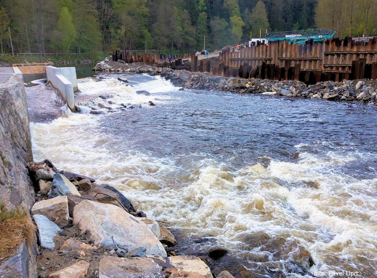 1) rekonstrukce Staroměstského jezu postoupily do poslední fáze a zatarasená je ...