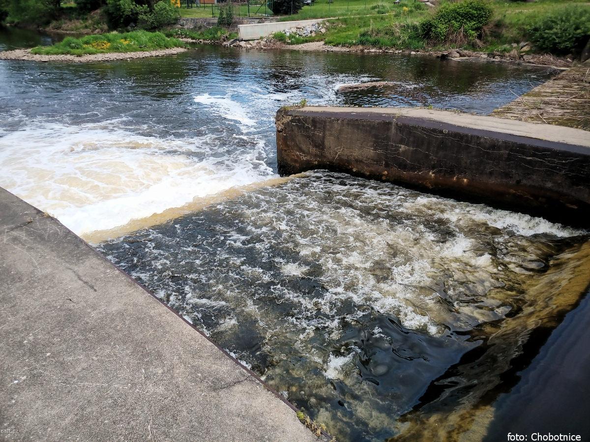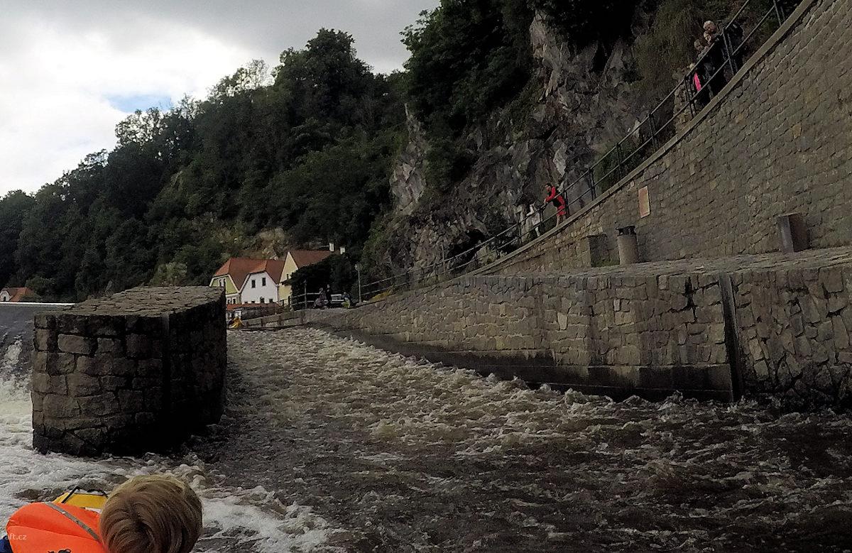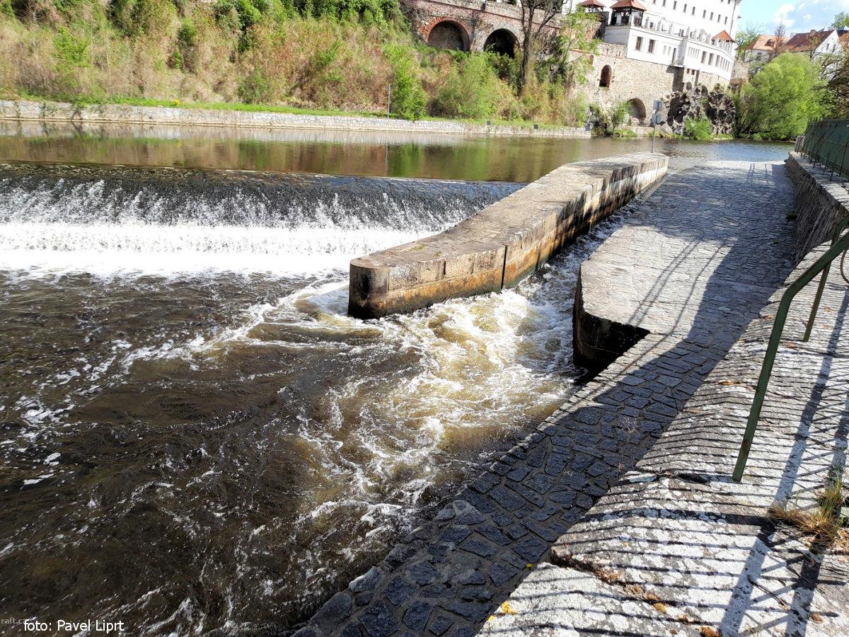 r.km 284,9 Na Rechlích 07/07/2022, stav 40 m3/s v Krumlově