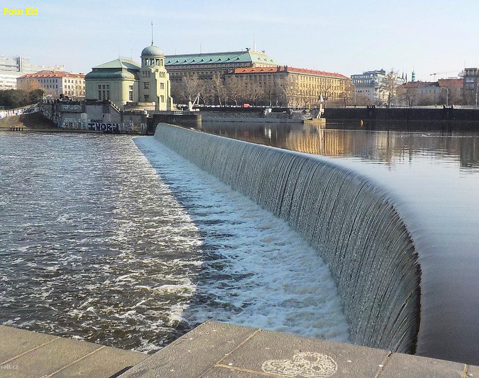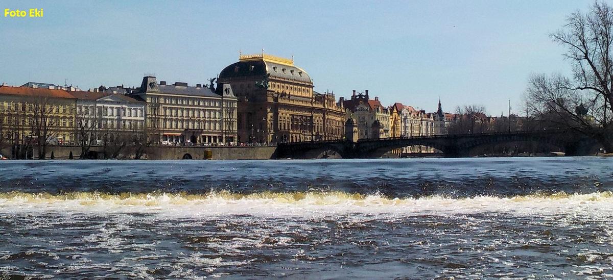 r.km 53,1 Staroměstský jez v pozadí s budovou Národního divadla