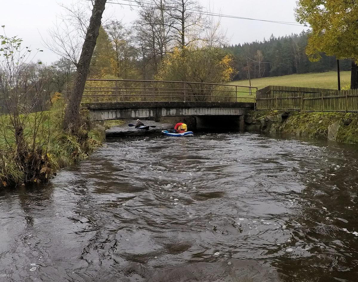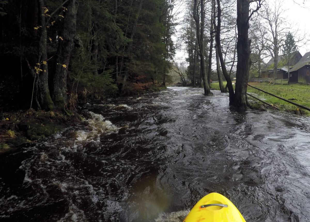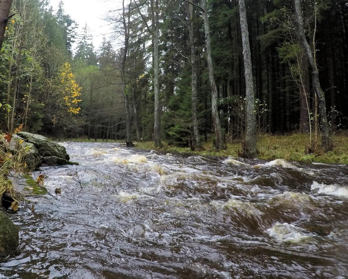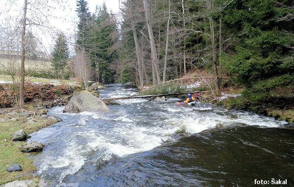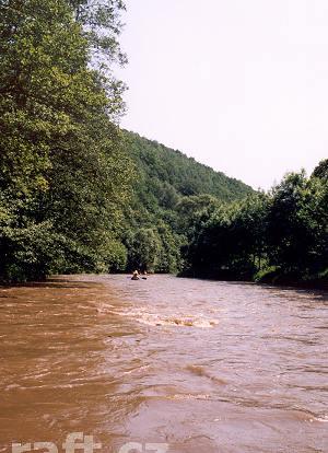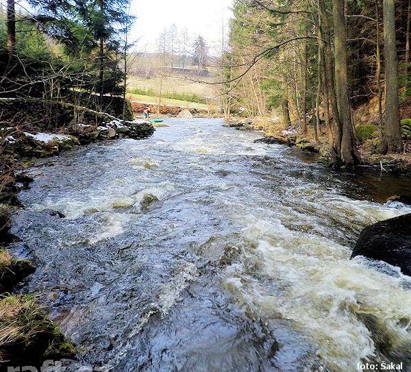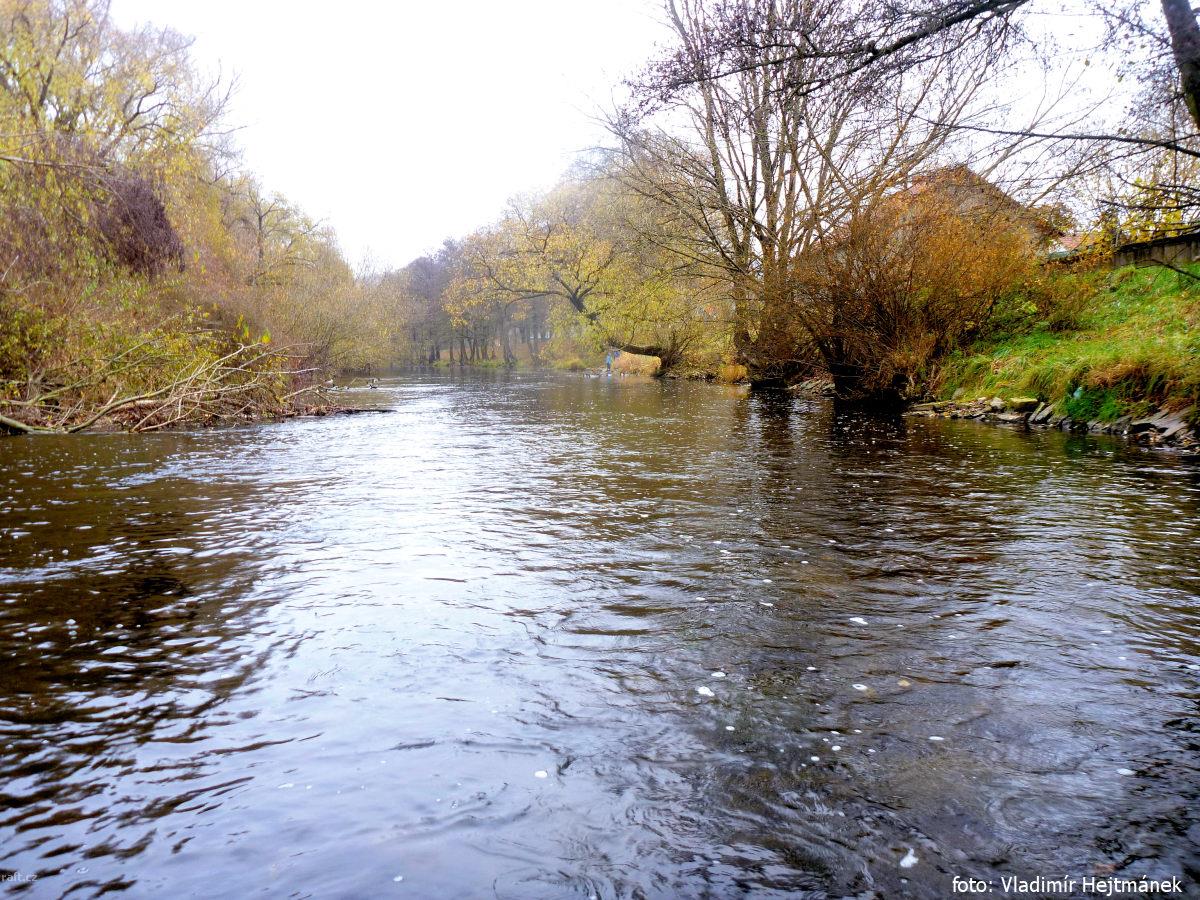 V dolním úseku, 3,5km pod jezem Březina, tedy v místě těsně za osadou Šárka kde řeka tvoří velký ost ...
