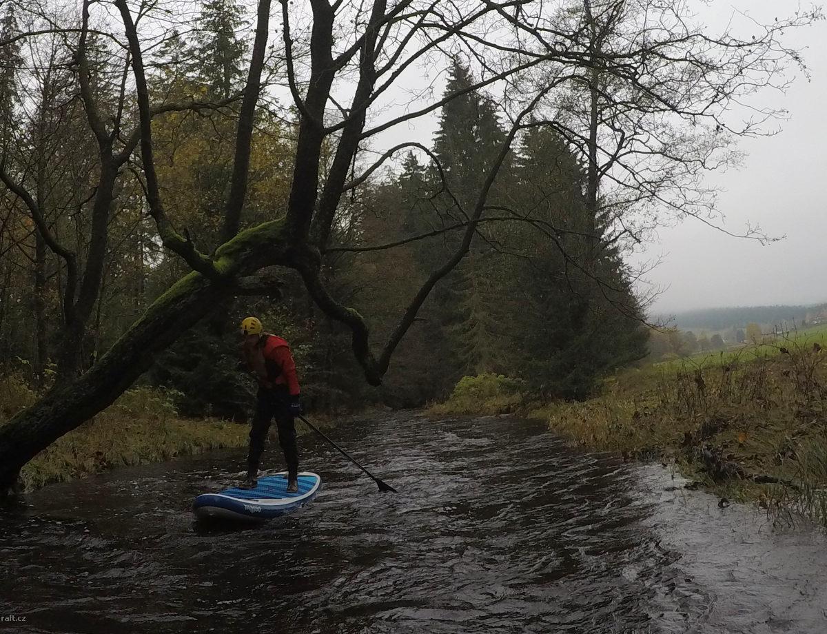 strom v Borači po povodni není, ale kolem Černvíru je několik stromů přes řeku ...