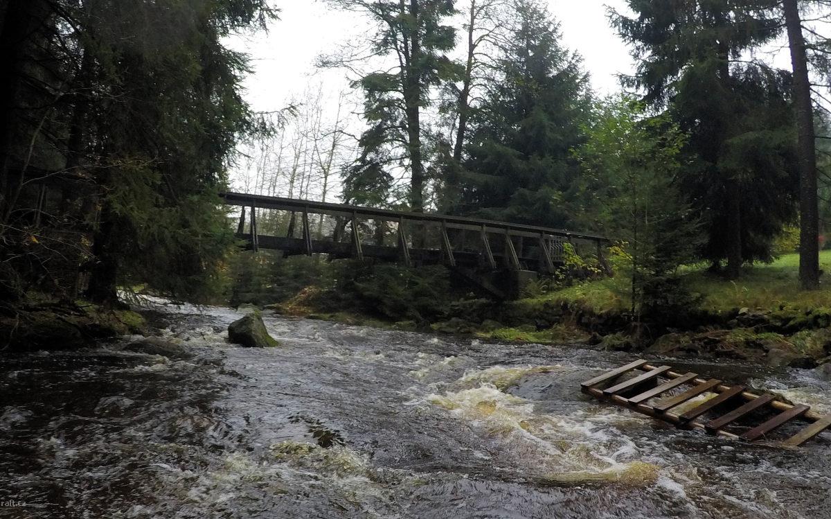 Dnes 18.7. byl padlý strom přes celou řeku asi 400 m před železničním mostem v Borači. Lépe přenést ...