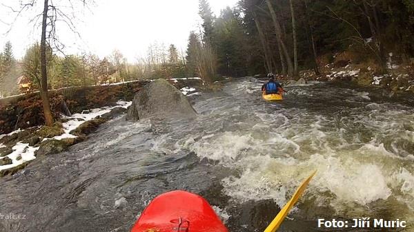 cca 74,0 ř.km v Březině za siln. mostem po vracení nahonu spadly strom přes celou řeku a