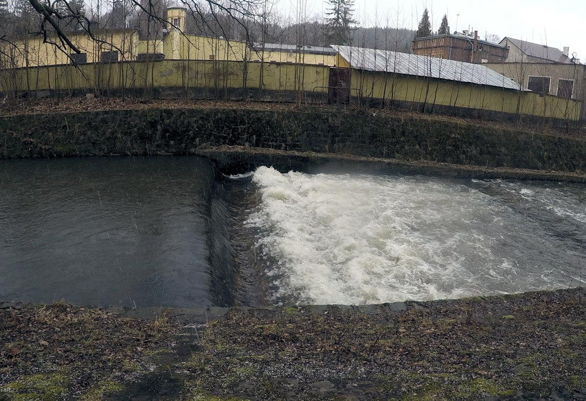 r.km 160,1 Jez s rybím přechodem, 5.3.2019, 2,2 m3/s v Miedzylesie
