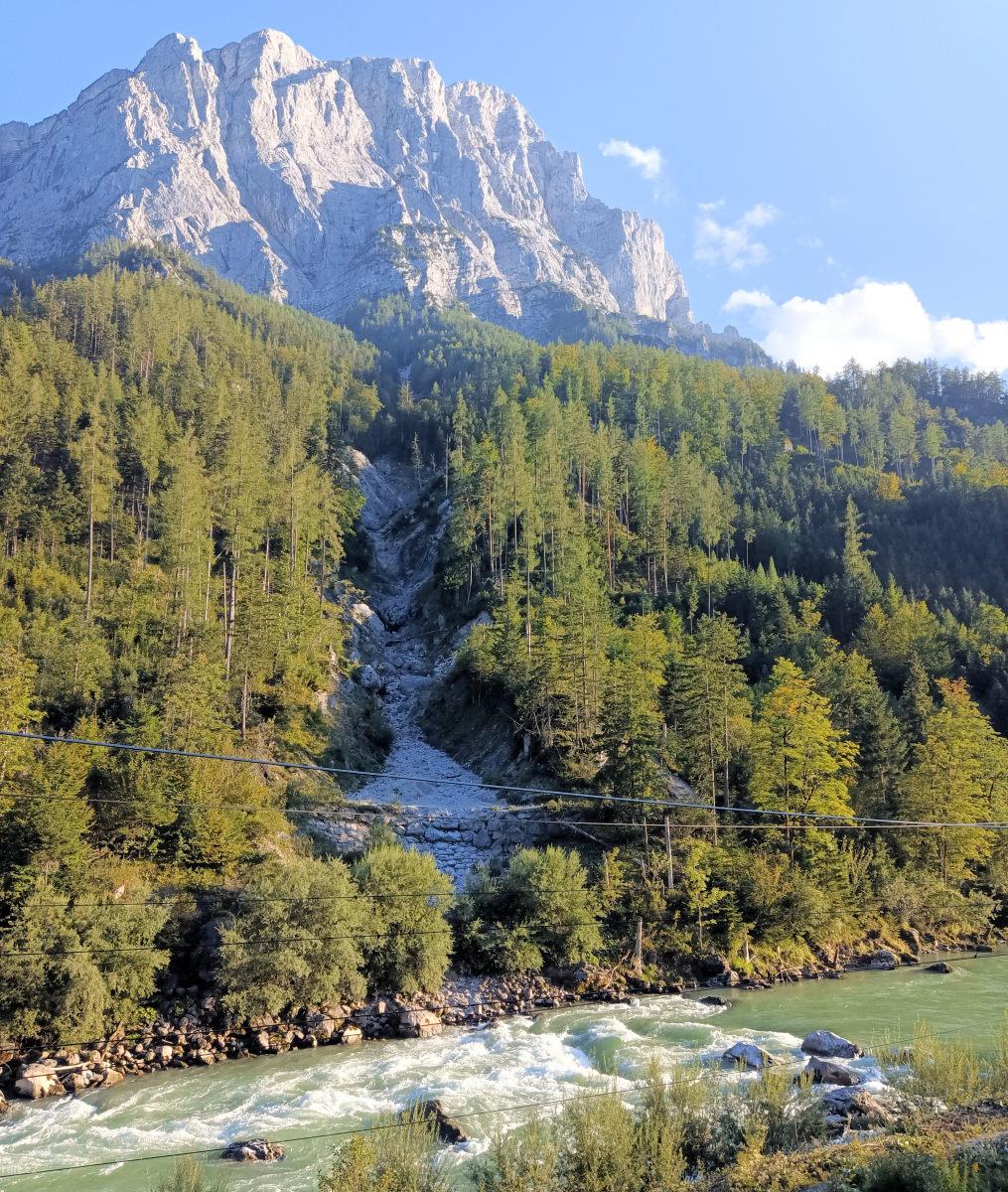 Těsně před výstupním místem Weissenbacht došlo k mohutnému sesuvu skalních bloků, které zatarasily ř ...