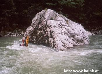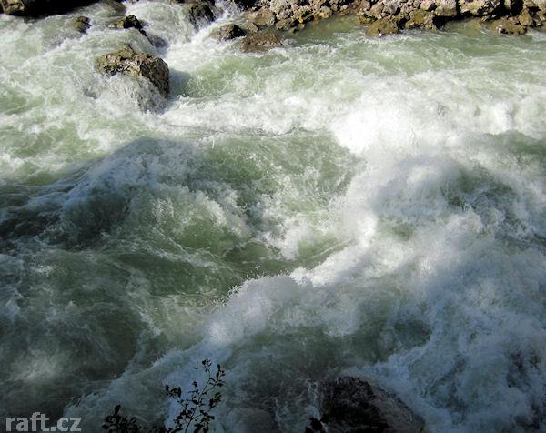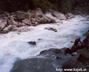 V několika kamenech závalu - peřeje IV+ před vysedáním Weissenbacht, jsou kovová oka. Je to v té spo ...