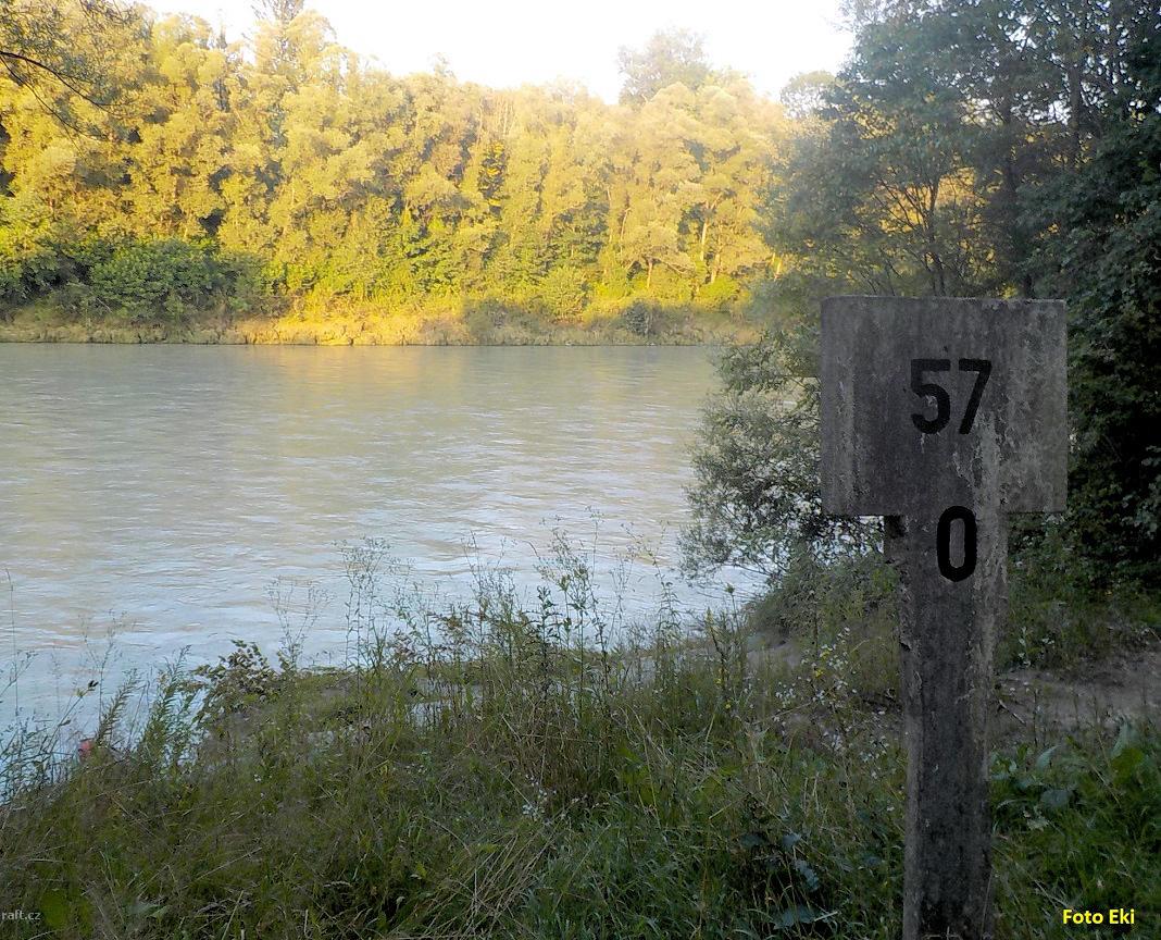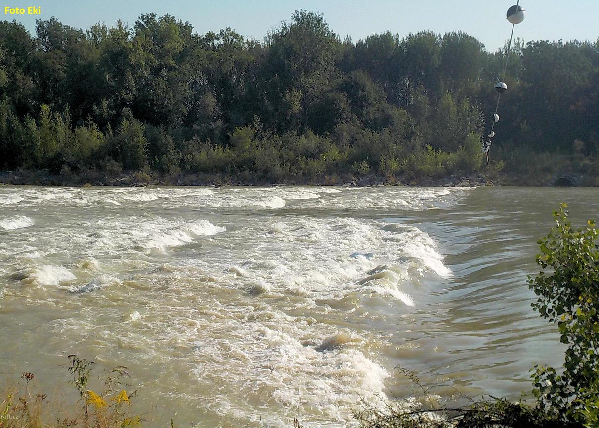 r.km 148 - Před nesjízdným jezem v Eschenau visí tři ocelová lana nízko nad vodou. Proto u druhé var ...